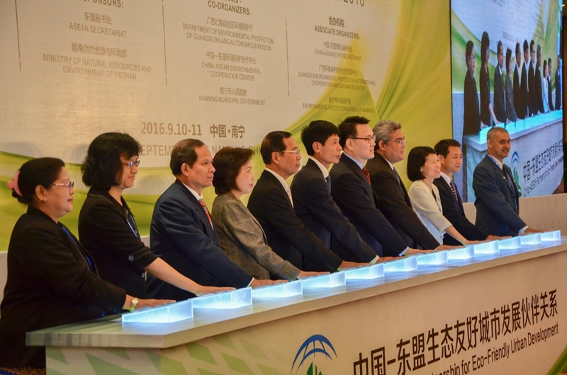 9月10日,由中国国家环境保护部和广西壮族自治区人民政府主办的“2016年中国-东盟环境合作论坛”在南宁召开。本届环境论坛以“绿色发展与城市可持续转型”为主题,其间还举行了“中国-东盟生态友好城市发展伙伴关系”启动仪式,中国与东盟携手,共同推动绿色发展加快城市可持续转型。